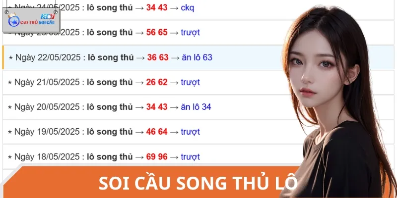 Bài viết này Cao Thủ Soi Cầu 247 đã giúp bạn hiểu rõ hơn về soi cầu song thủ lô, từ đó áp dụng hiệu quả để nâng cao tỷ lệ thắng. Hãy kiên trì luyện tập và kết hợp nhiều phương pháp để gia tăng cơ hội chiến thắng trong từng kỳ quay.